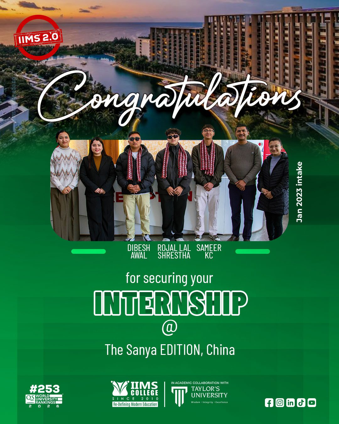 IIMS Students Secure Prestigious International Internship at The Sanya EDITION, China