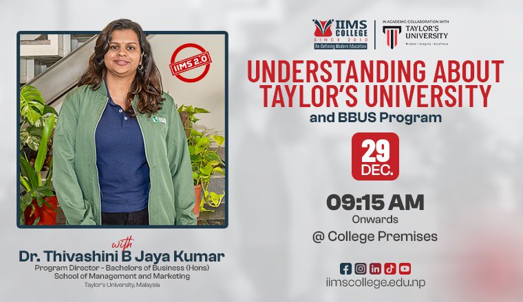 The session will give students a clear understanding of the BBUS program, covering its academic structure, learning approach, and future opportunities. Students will also learn more about Taylor’s University, its teaching methods, and how it prepares graduates for global career paths.