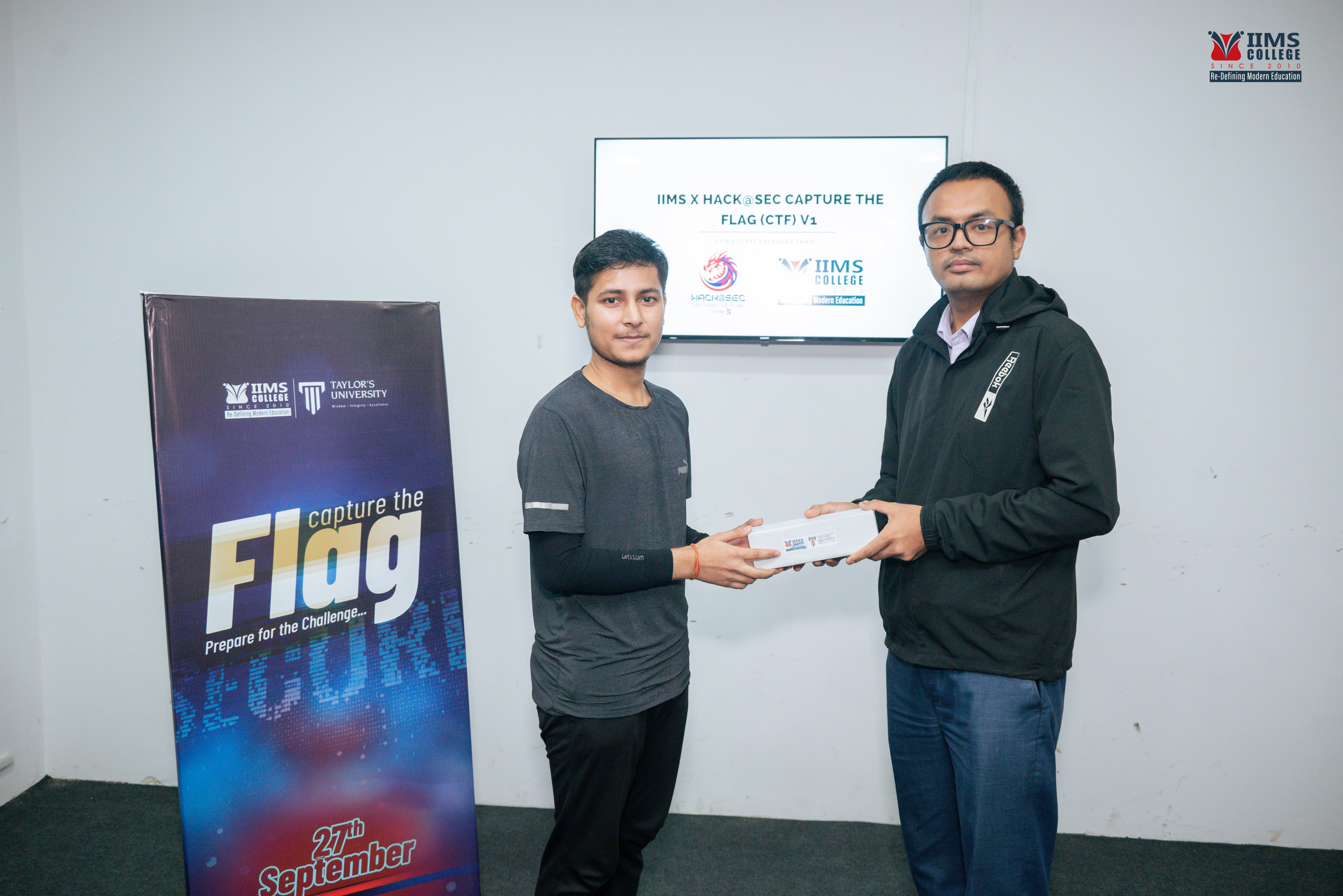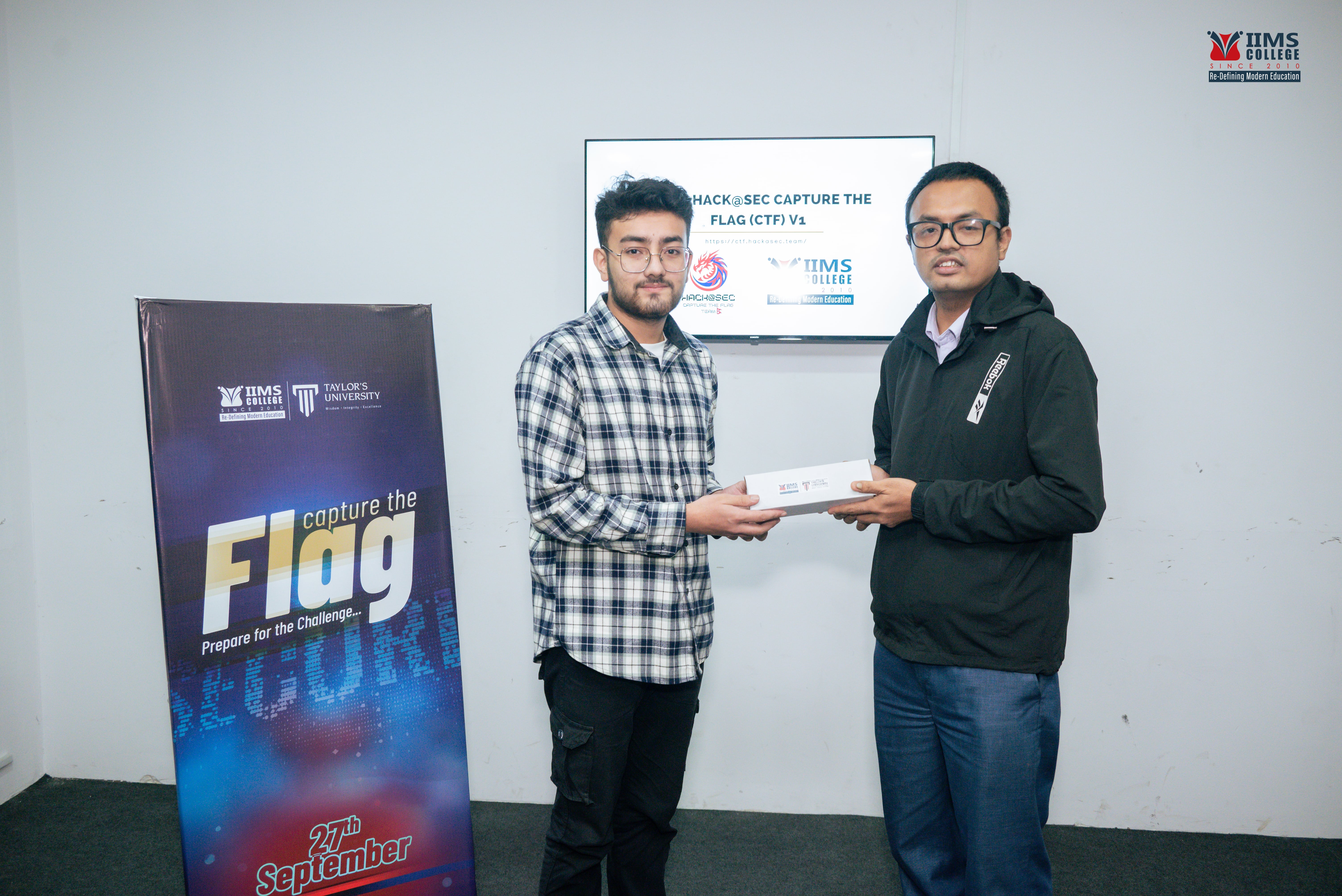 On September 27th, IIMS College hosted a Capture the Flag (CTF) competition for aspiring cybersecurity enthusiasts. The Cybersecurity specialization team of BCS (Bachelor of Computer Science) faculty took the lead in organizing this event. This event indeed was a unique opportunity for cybersecurity enthusiasts to test their skills and learn from industry experts.