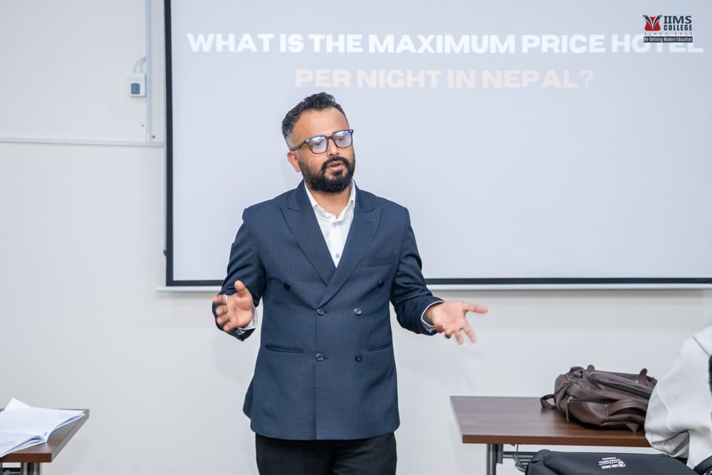 The session offered a valuable blend of theoretical knowledge and real-world insights, helping students connect classroom learning with practical applications in the field. IIMS College extends heartfelt thanks to Mr. Aakash Pant for dedicating his time and expertise to inspire and guide the future leaders of Nepal’s hospitality industry.
