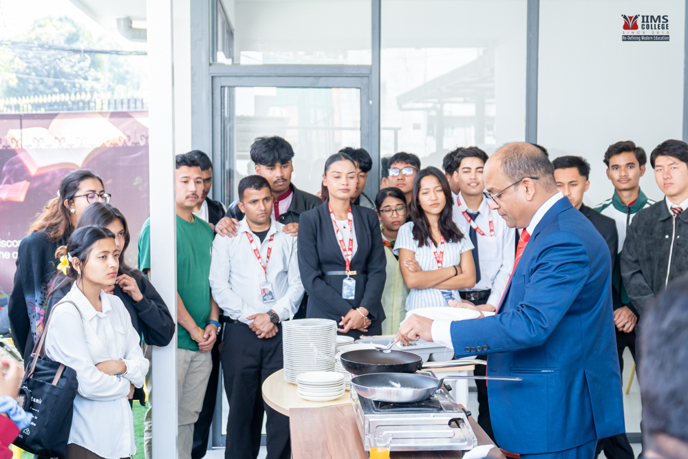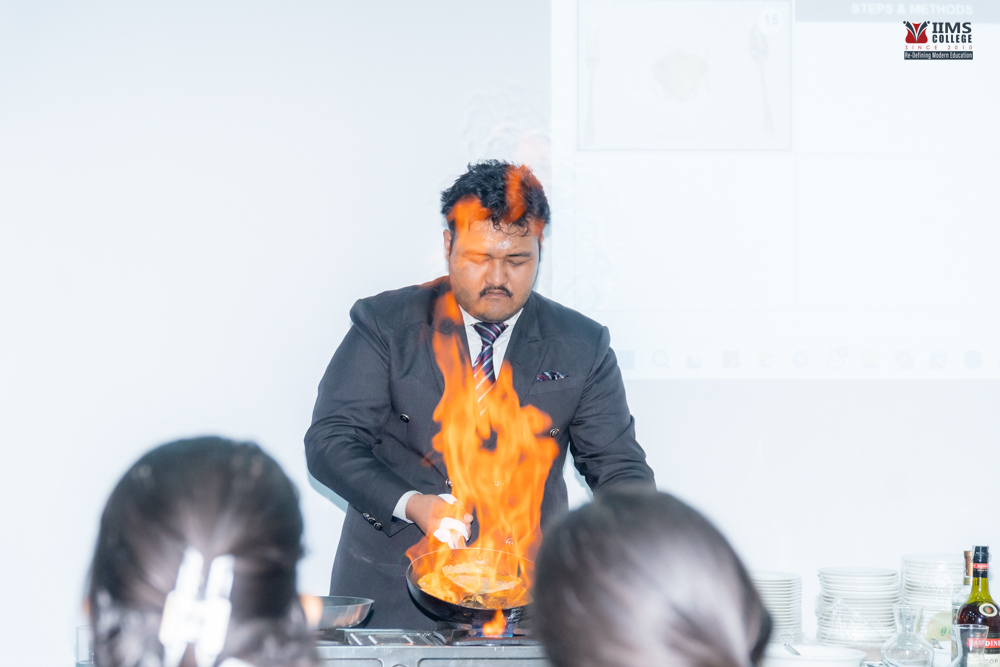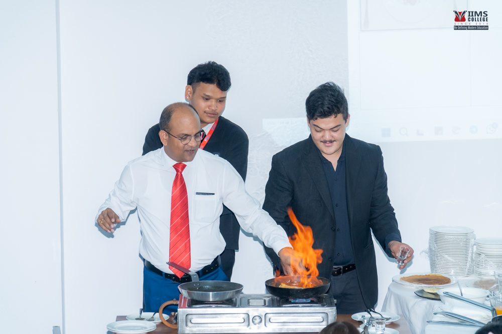 IIMS College recently hosted an exclusive Flambé Session, led by Dr. Anshul Garg, Programme Director at Taylor’s University, Malaysia. The session provided an immersive learning experience for students across multiple BIHM intakes, showcasing the perfect blend of culinary skill, precision, and presentation.