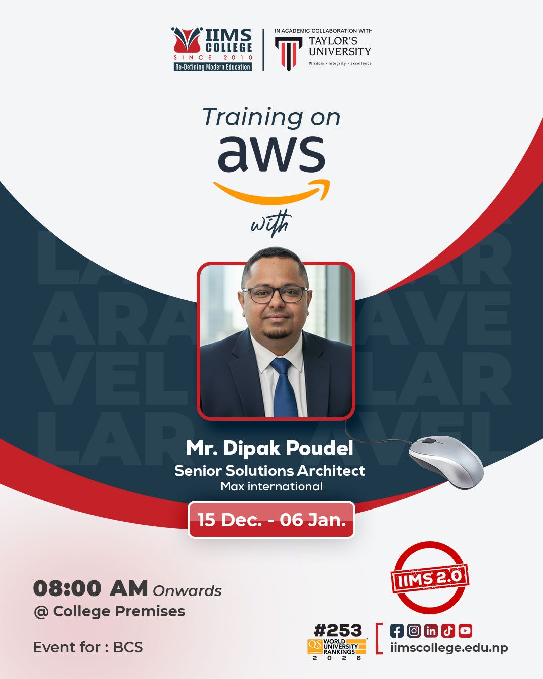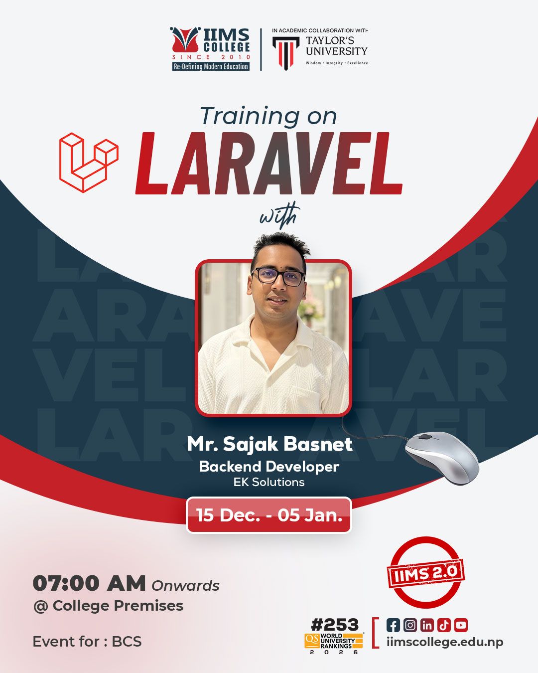 From 15 December 2025, 21 days of training in Flutter, Laravel, and AWS are going on. These sessions help students learn practical skills and work on real projects to get ready for the industry.