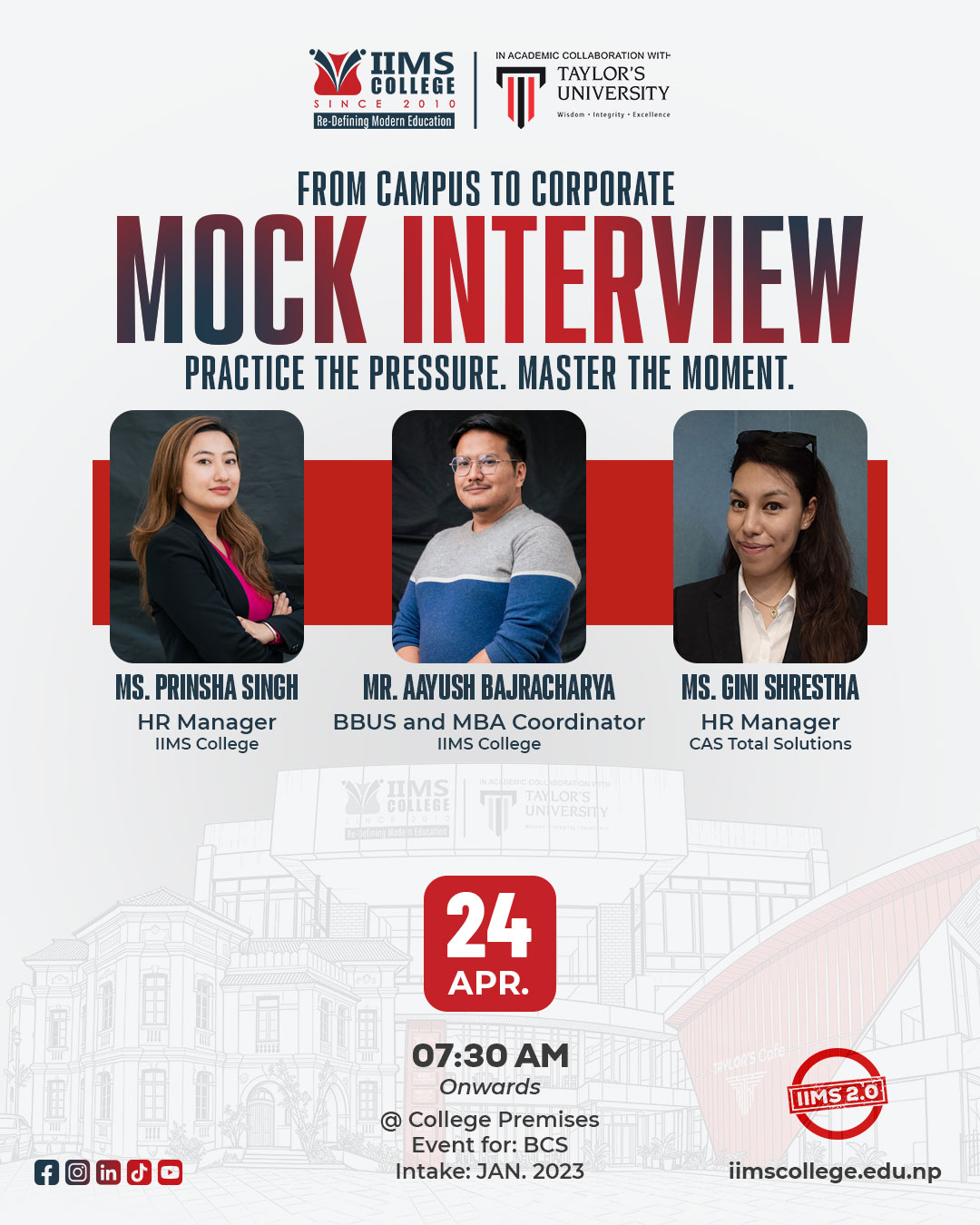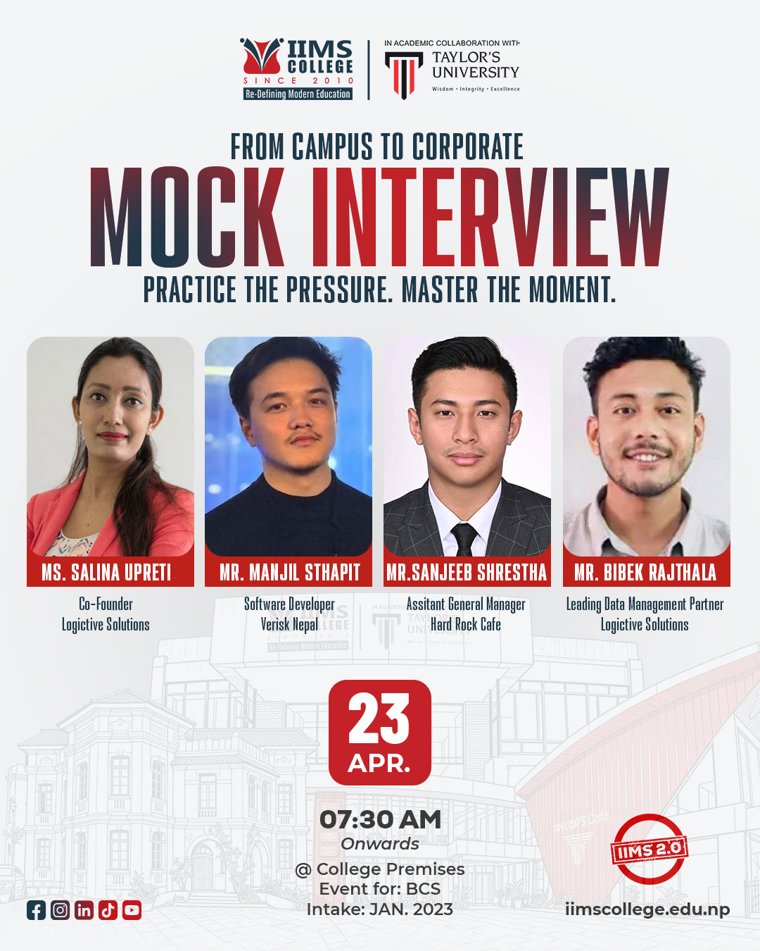 - Mr. Aayush Bajracharya – BBUS & MBA Coordinator, IIMS College