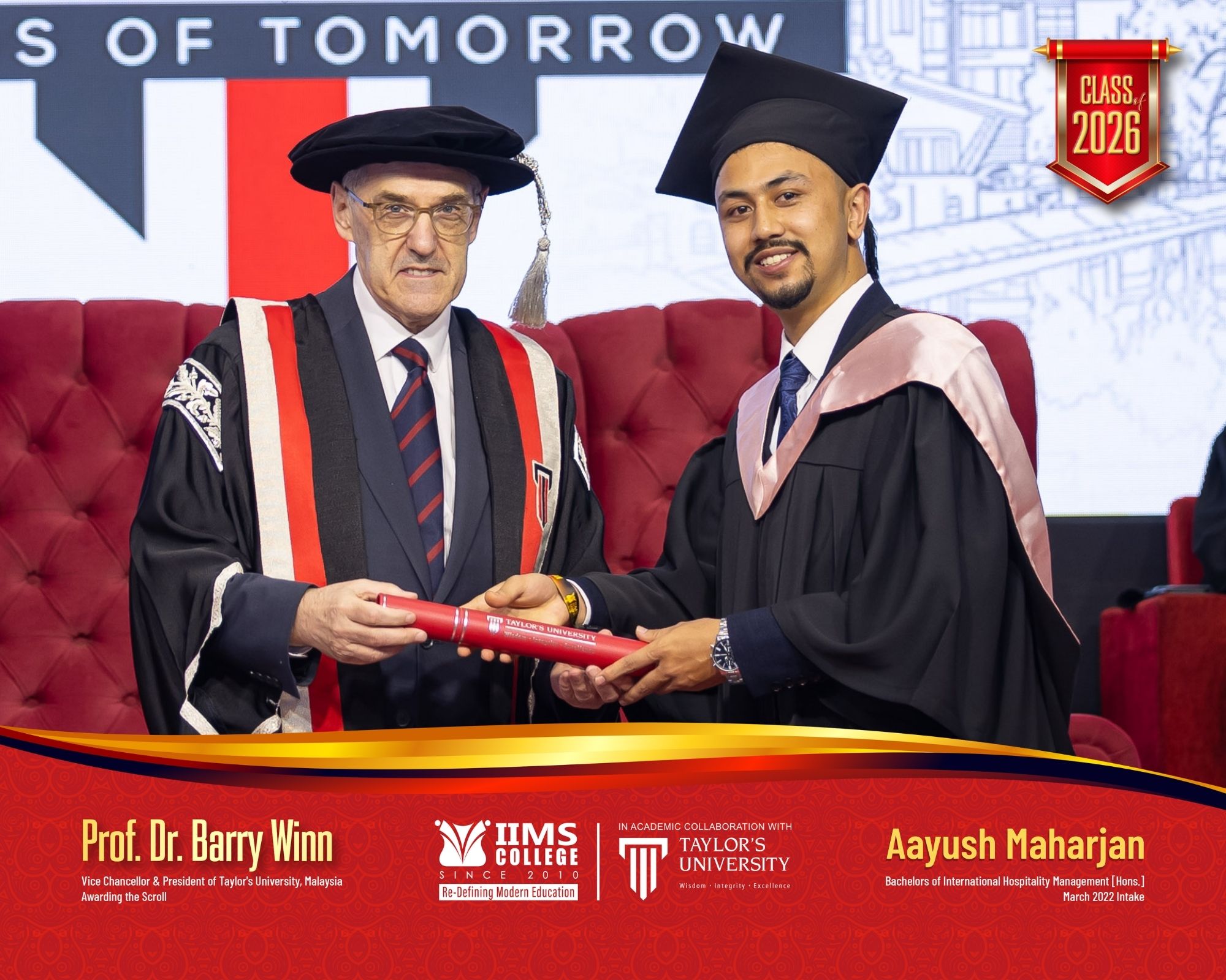 Addressing the audience, Mr. Sabindra Maharjan, CEO/Executive Chairman of IIMS Group, expressed his pride in the graduates and reaffirmed IIMS College’s commitment to delivering international-standard education in Nepal through its academic partnership with Taylor’s University. He further emphasized how this collaboration continues to empower Nepali students with globally recognized degrees without the need to go abroad.