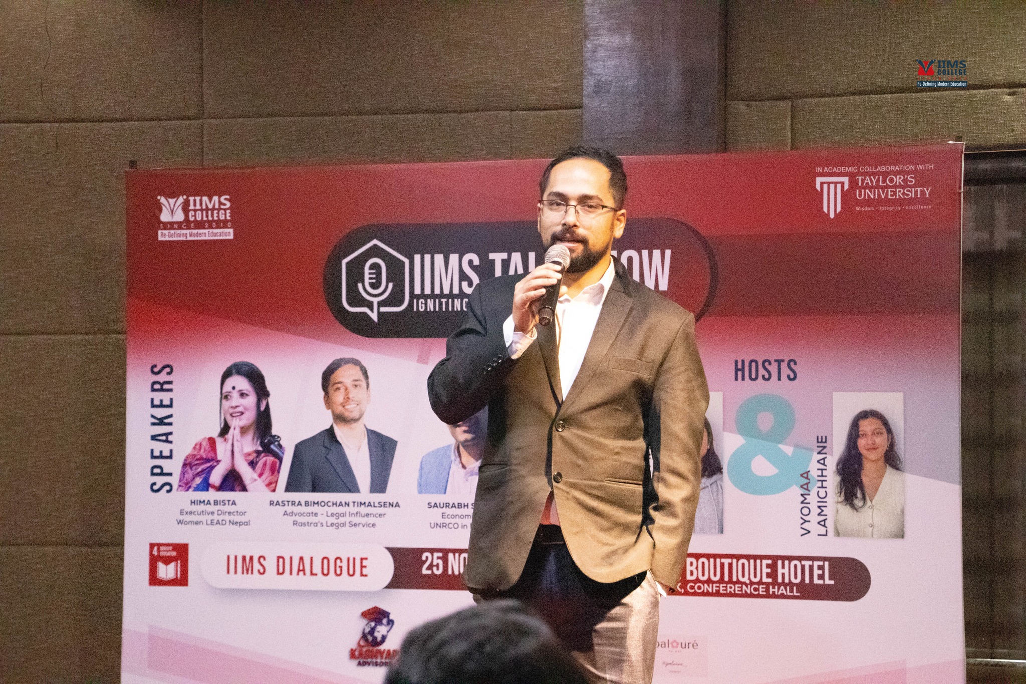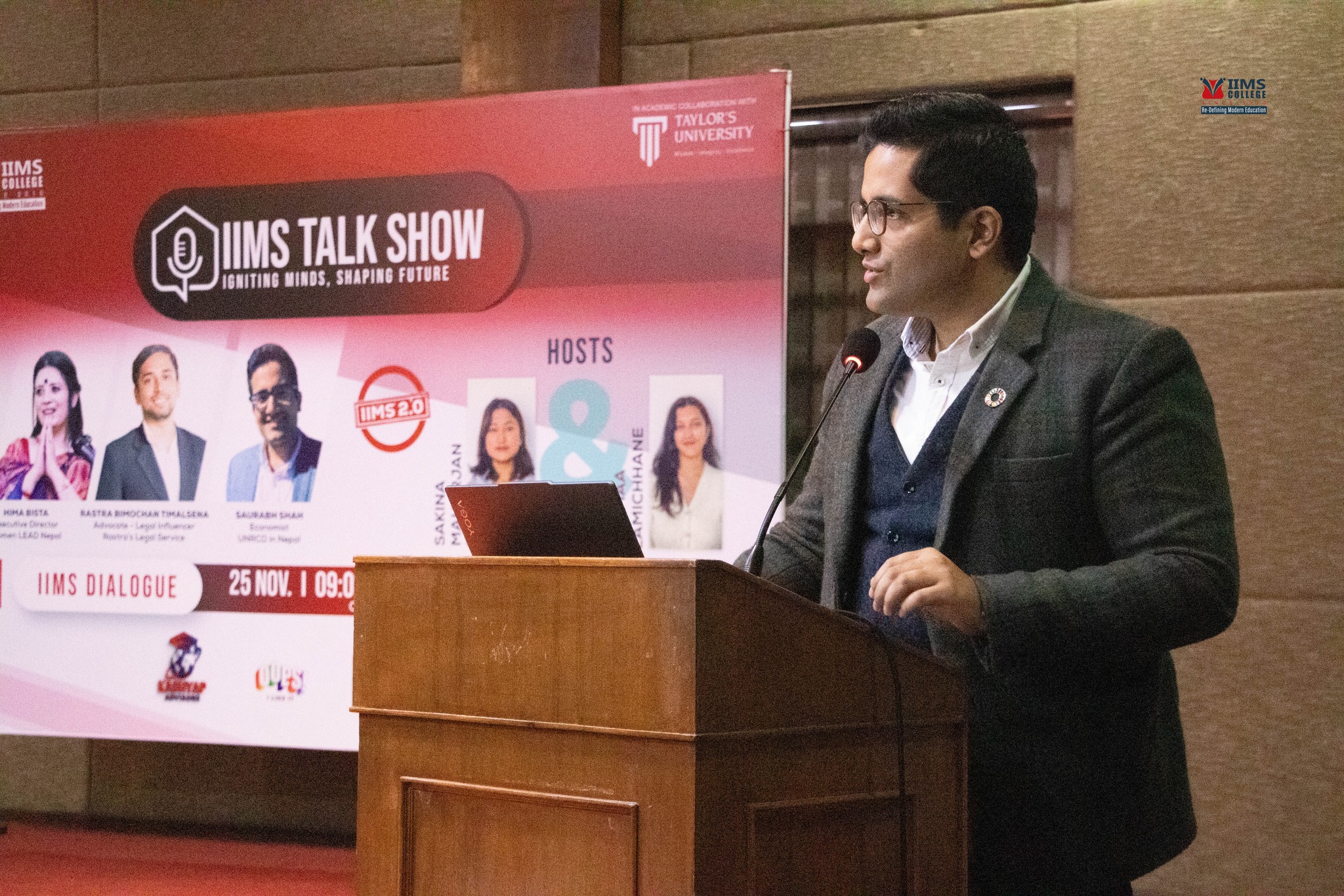 The IIMS Talk Show – IIMS Dialogue provided a warm space where ideas felt personal and every voice was heard. Hima Bista, Rastra Bimochan Timalsena, and Saurabh Shah came together for a morning that was open, honest, and truly inspiring. Our speakers shared their journeys and experiences, giving insights into leadership, law and economics that left everyone thoughtful and motivated.