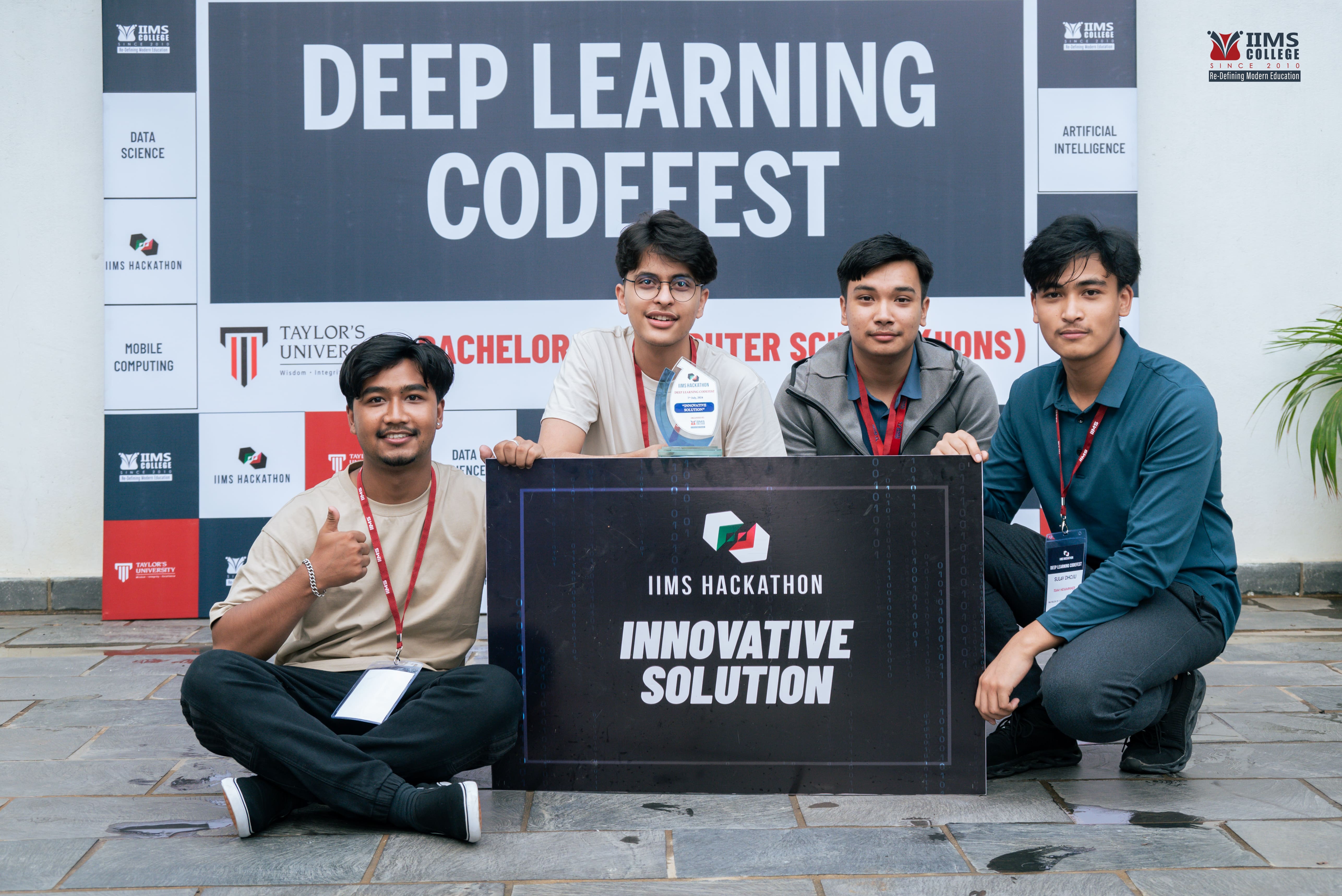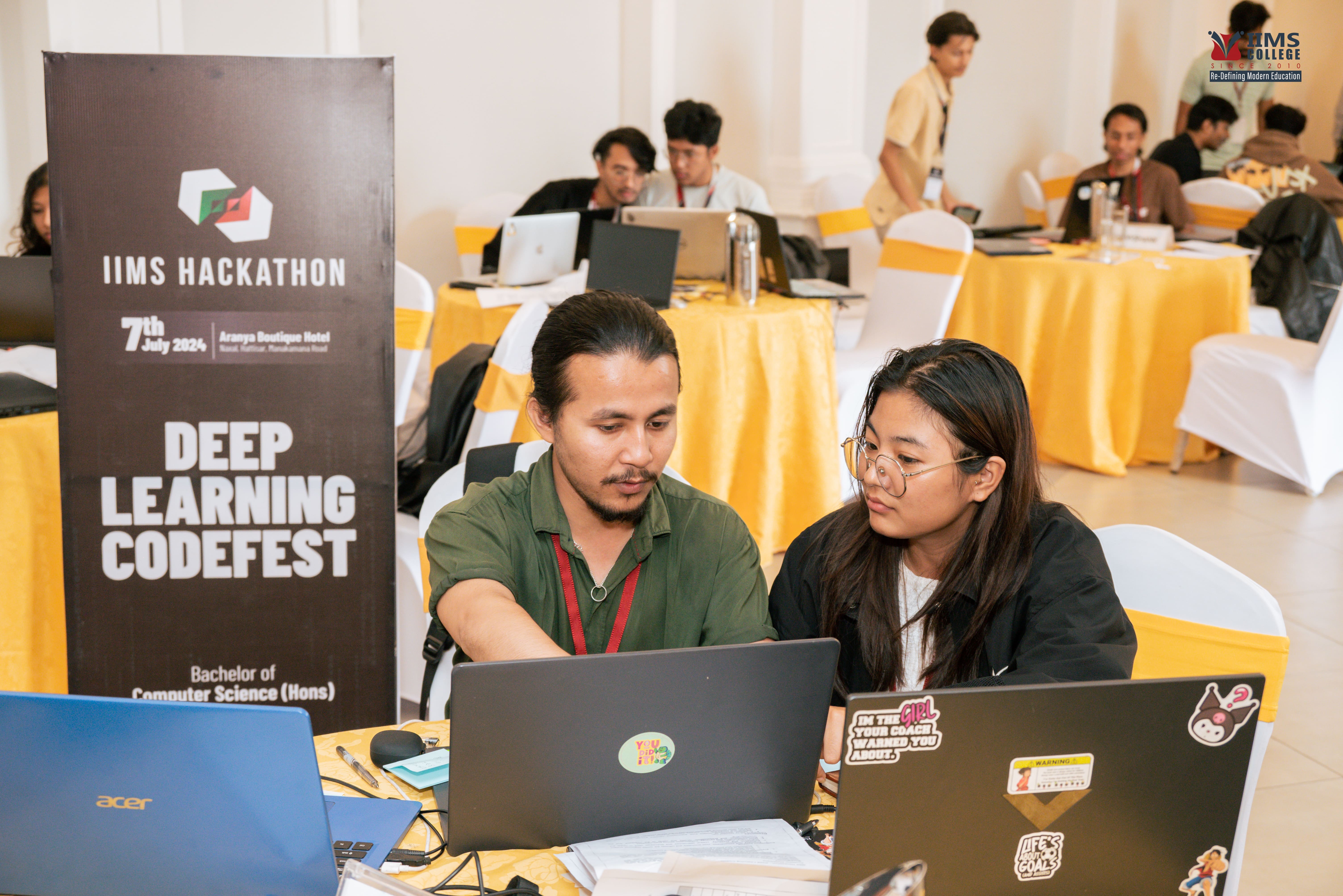 IIMS College is proud to announce the successful conduction of its first-ever Hackathon, IIMS Hackathon: Deep Learning Codefest, held on July 7th, 2024. This 10-hour-long continuous hackathon was designed to bring together student teams from the Bachelor of Computer Science faculty to tackle real-world challenges using deep learning techniques. Each student team comprised senior students from the March & August 2022 intake and juniors and freshers from the recent intakes. This encouraged knowledge sharing and fostered skill building as they came together to take on the coding challenge.