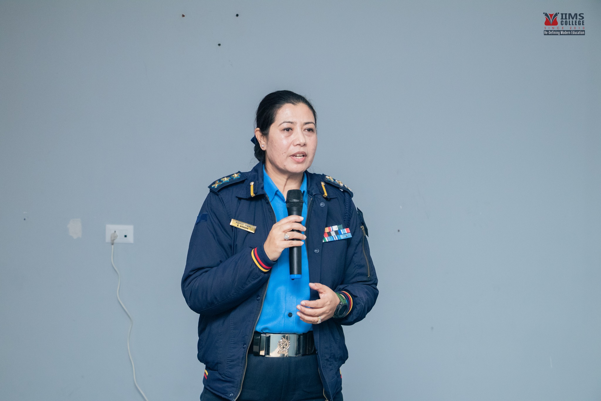On December 2nd, IIMS College hosted an important session with Ms. Basundhara Khadka, Superintendent of Police from the Women, Children, and Senior Citizen Service Directorate. The session focused on ending digital violence against women and girls, a topic that affects everyone in today’s digital world.