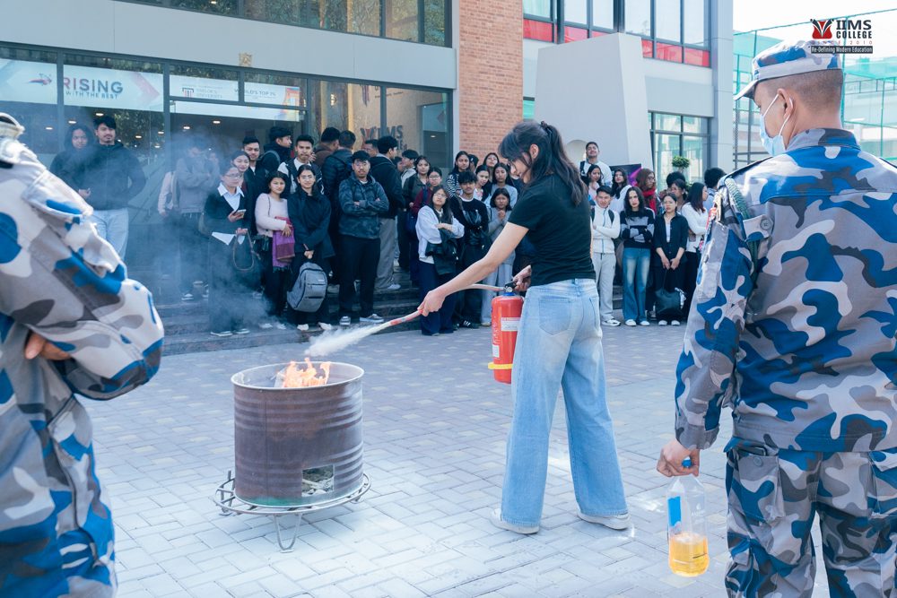 Today, students at IIMS College participated in the Basic Disaster Management Training & Demonstration, an engaging session designed to equip them with essential knowledge and practical skills for responding effectively during emergencies and disaster situations.